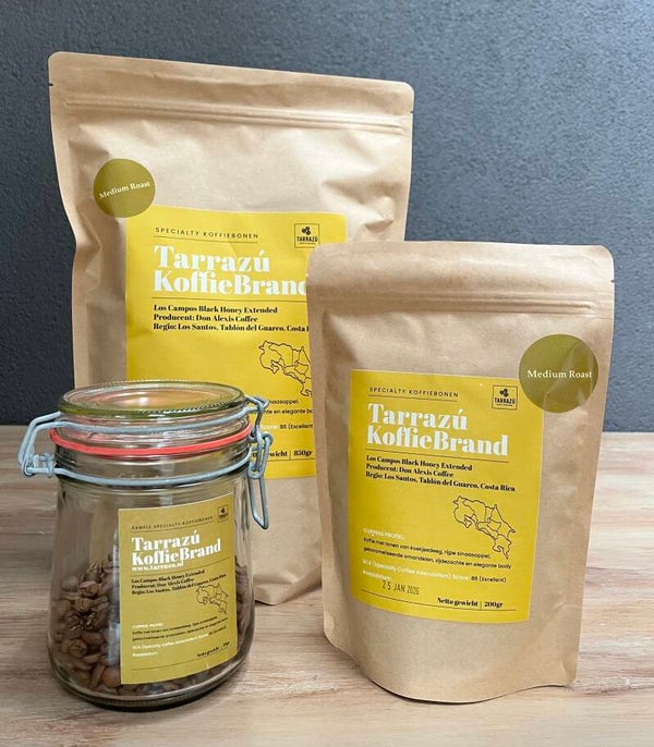 Los Campos Black Honey is een exclusieve specialty koffie (SCA 86) uit de regio Los Santos. De medium roast is perfect voor zowel espresso als filter. Voor een wat pittigere smaakt kiest u voor de dark roast die geschikt is voor uw bonenautomaat. De bonen worden altijd vers gebrand en op de dag van bestelling verzonden.